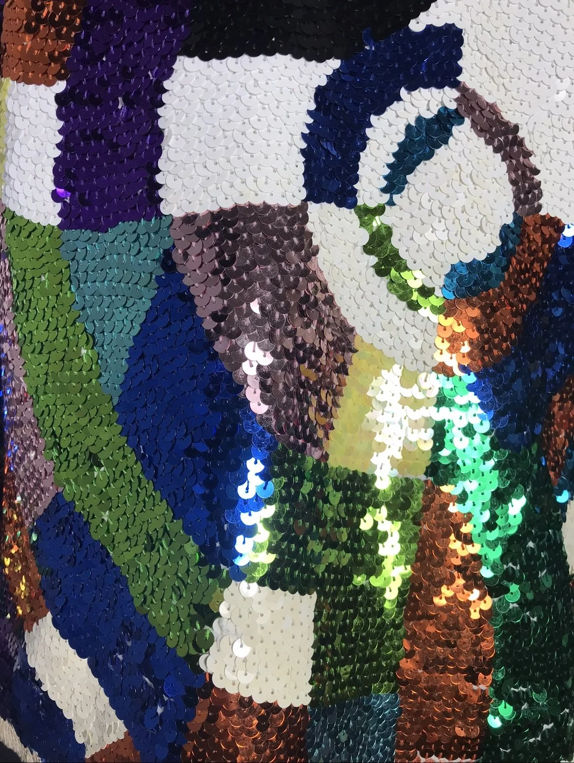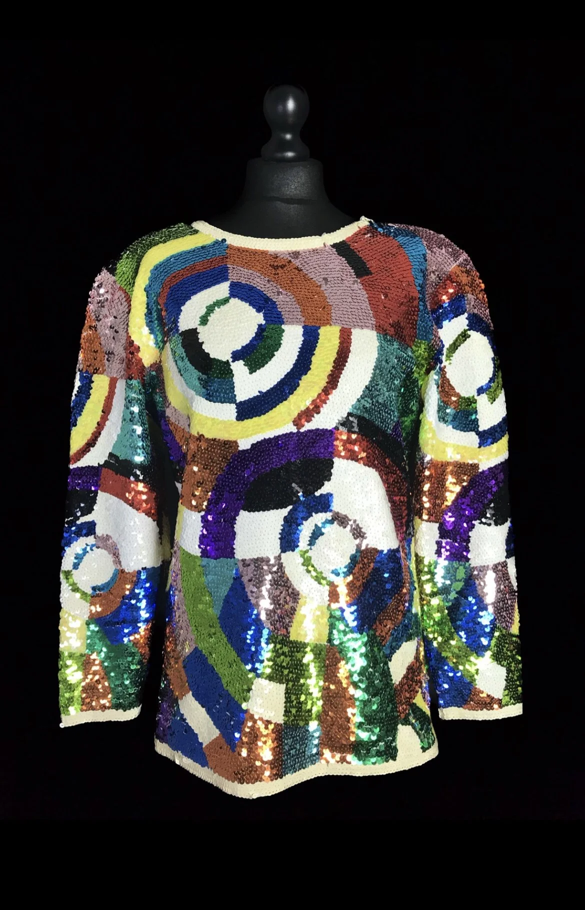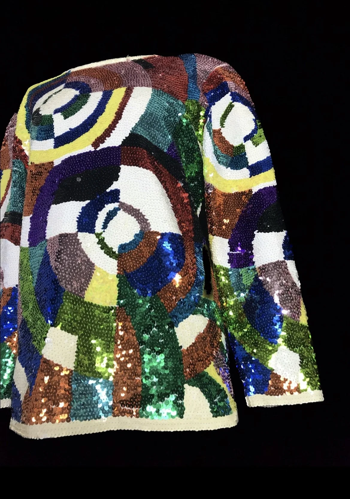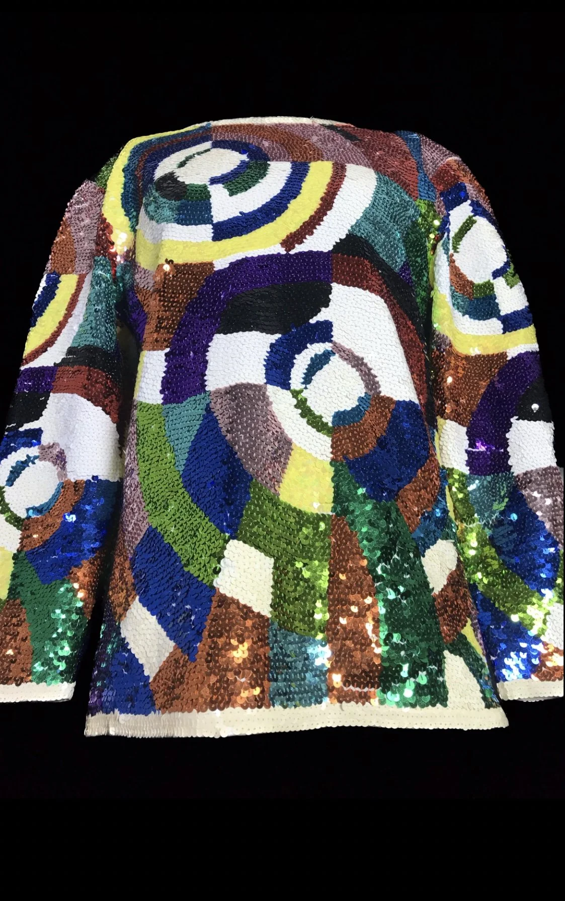 A sensational deadstock top with a rainbow scaled pattern of large sequins in shades of gold, green, pink and blue.