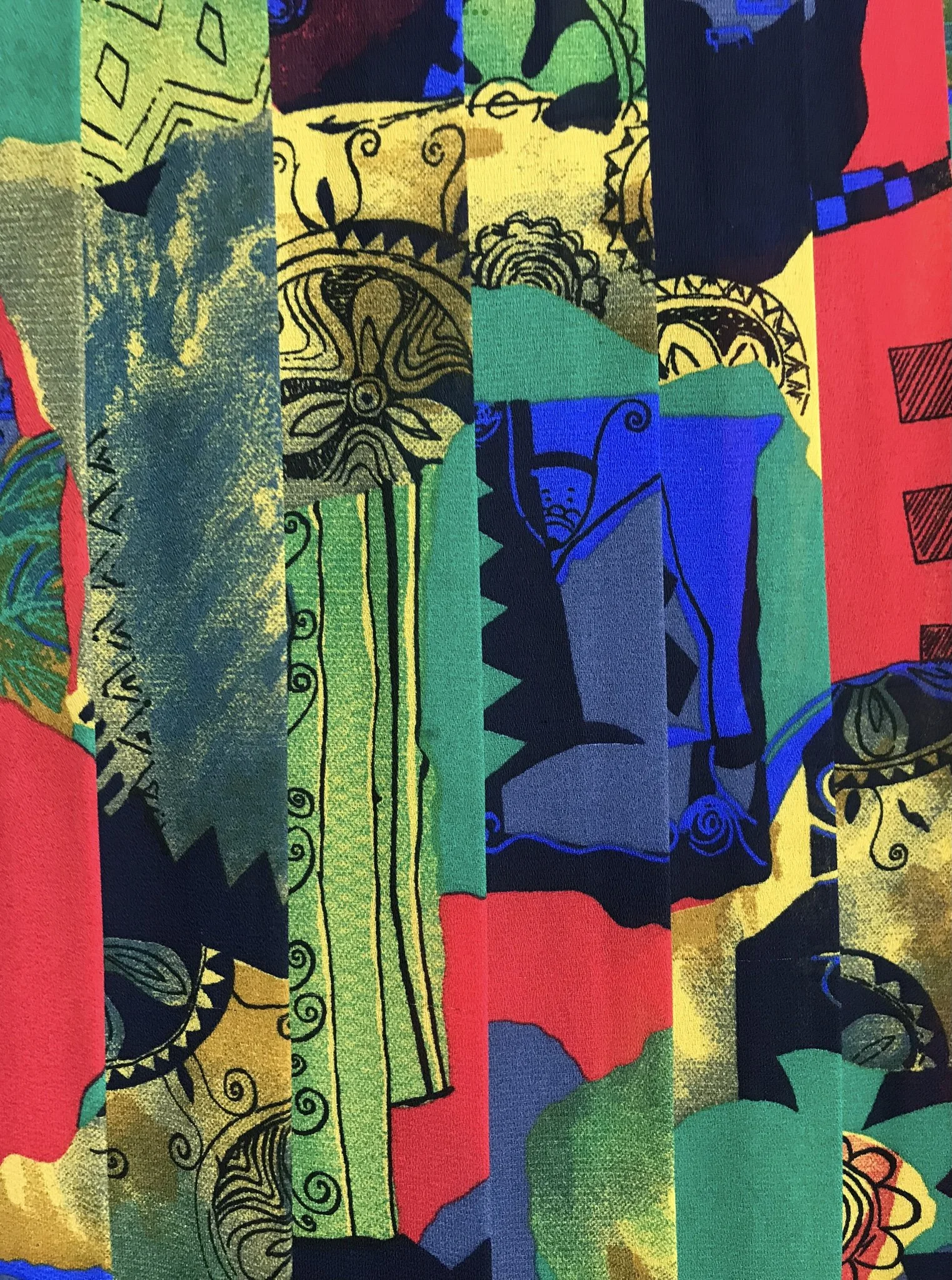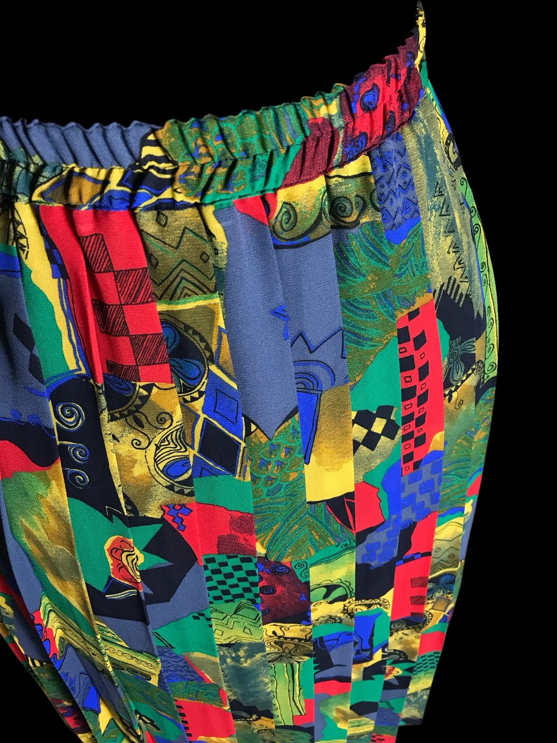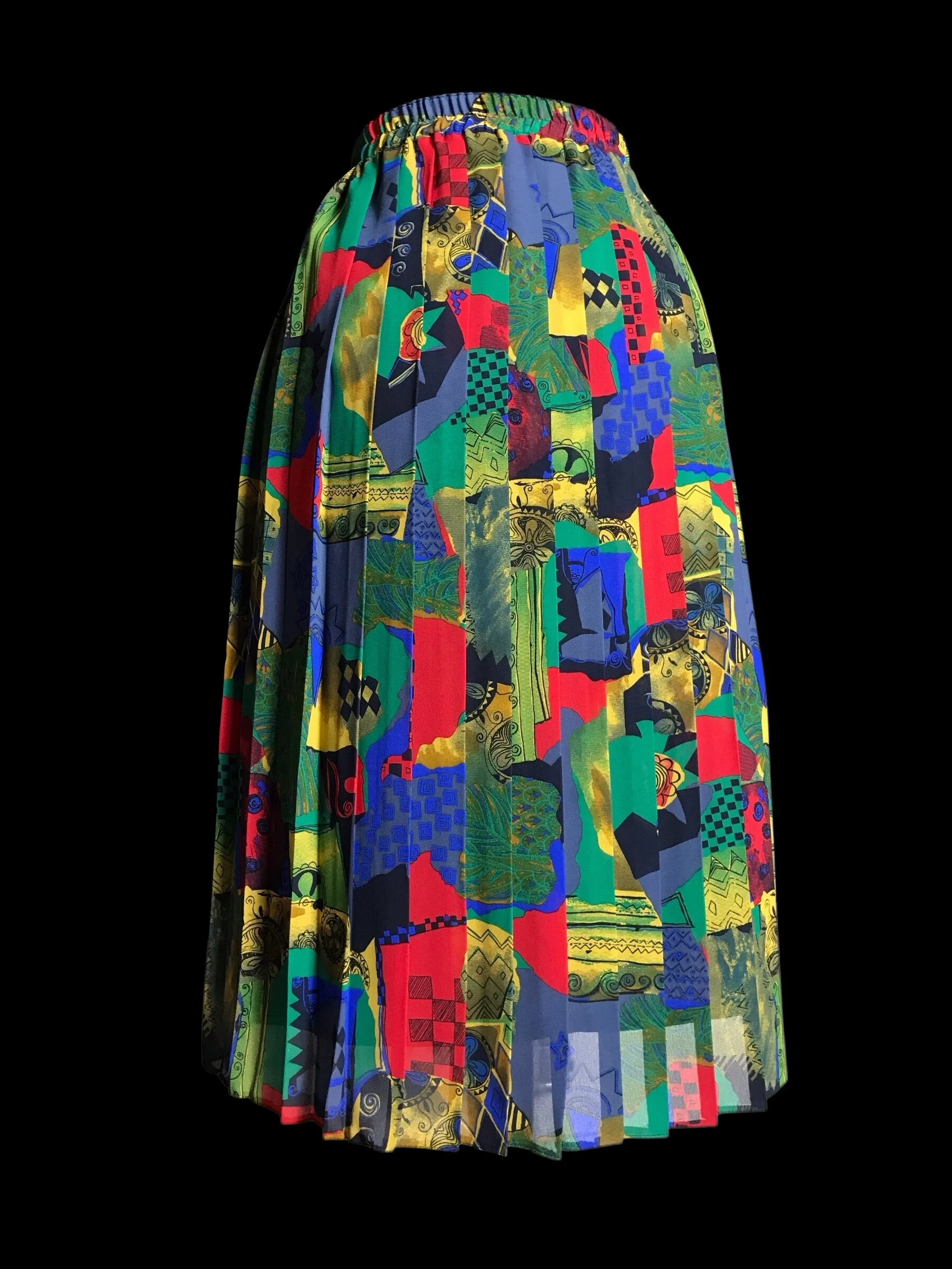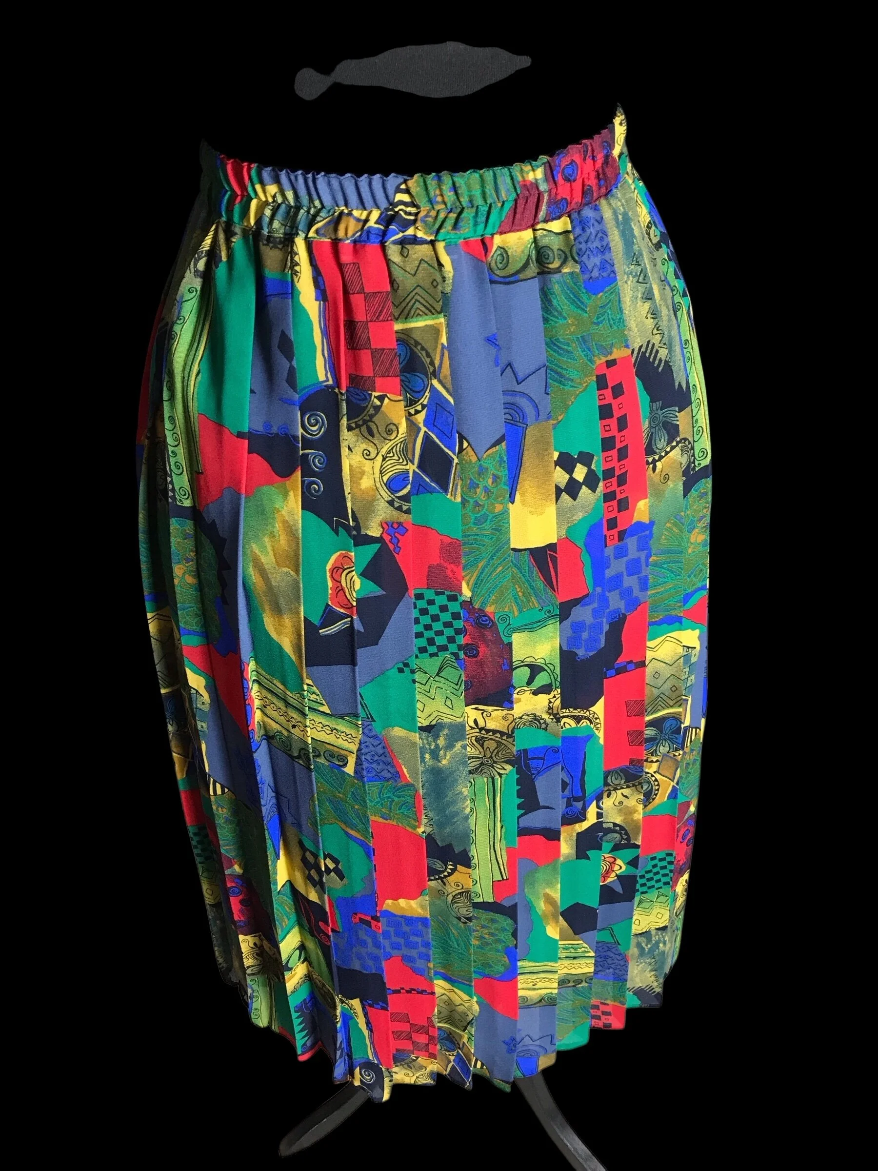 This stunning skirt from Hamells has an abstract almost fruity pattern in bold bright shades of red, orange, yellow, green, pink and white. The skirt is fully pleated from the elasticated waist to the hem.