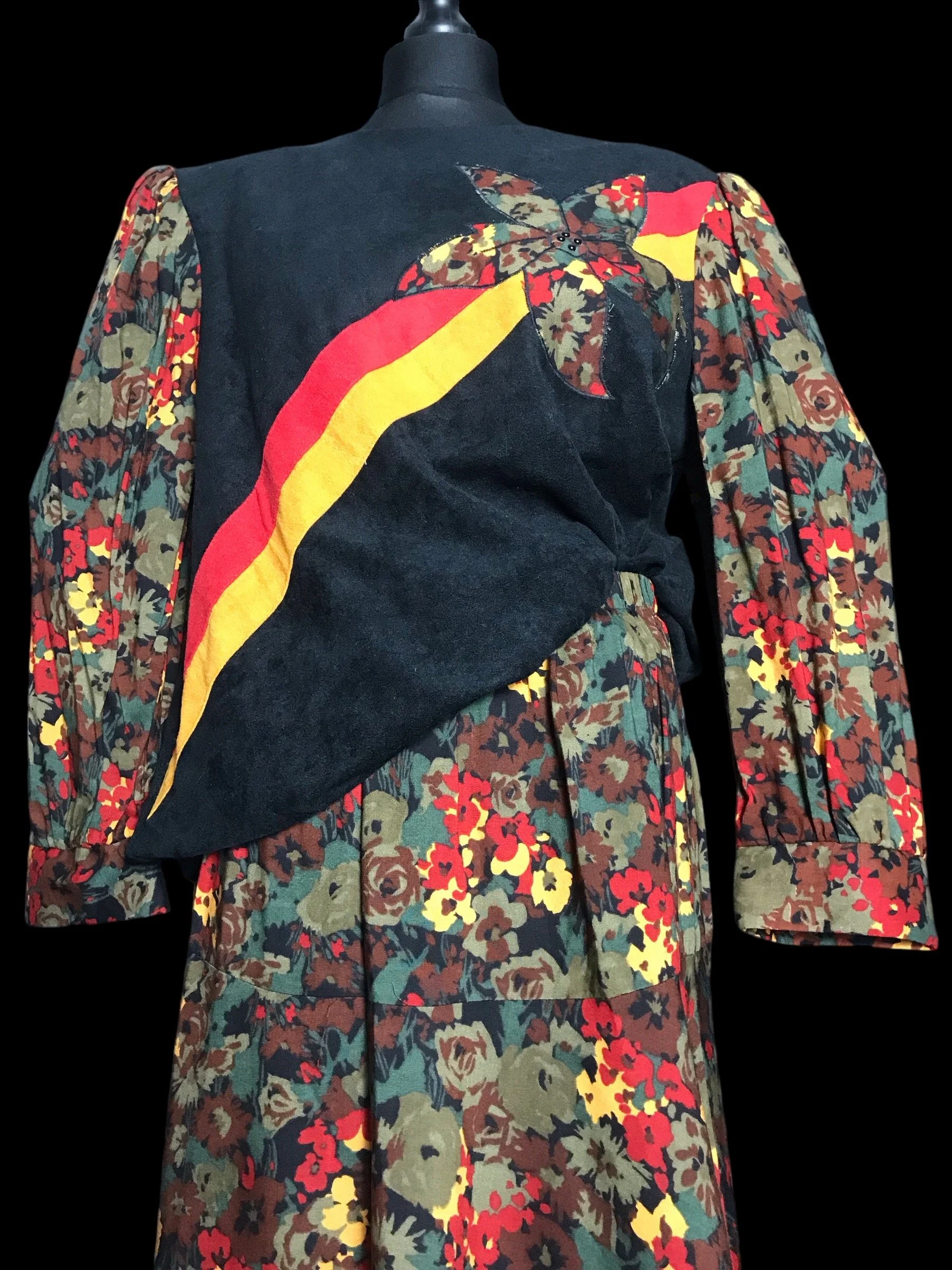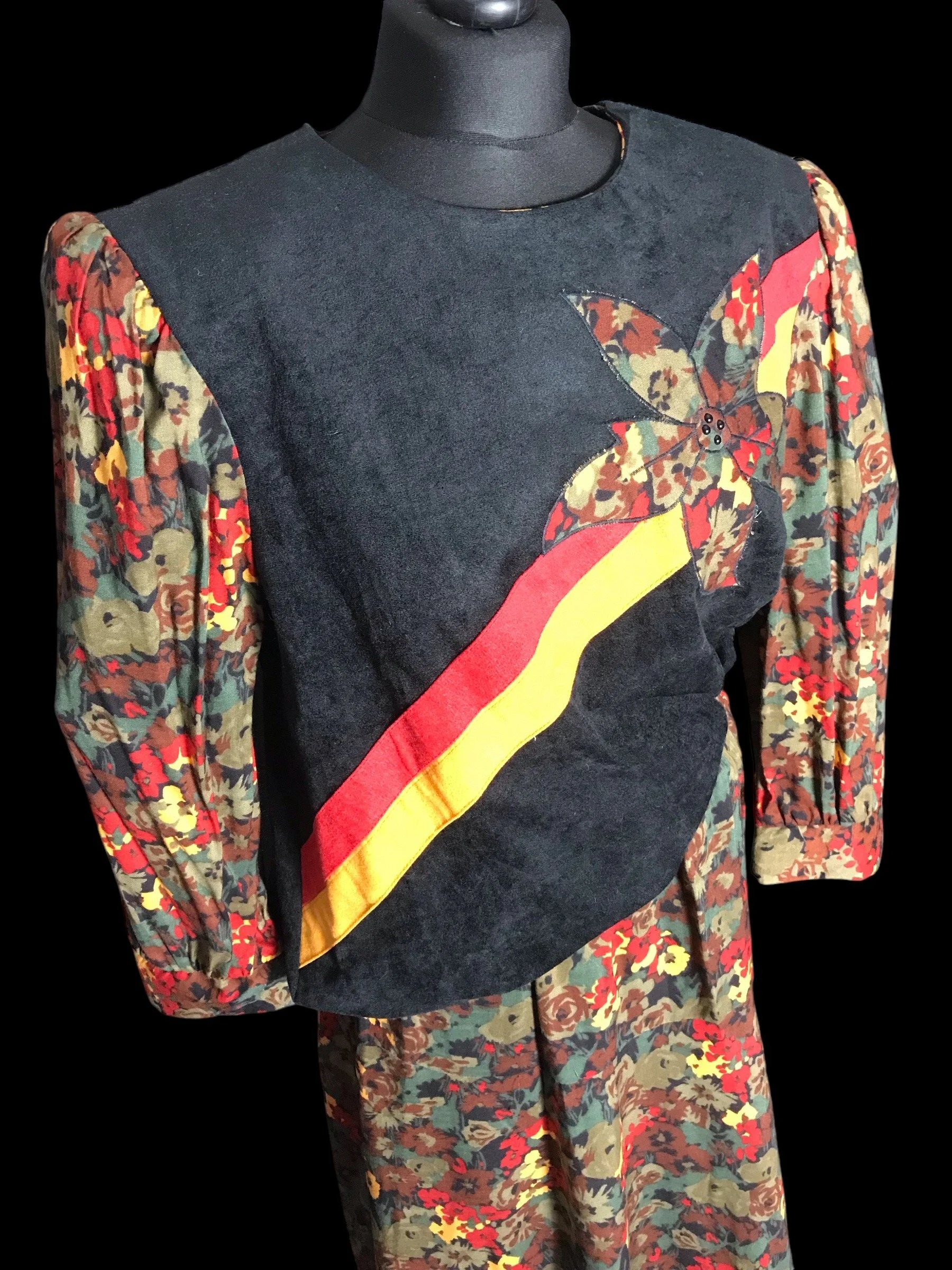 This Toni Todd co-ord has a stunning autumnal floral pattern on the skirt, sleeves and front centrepiece.