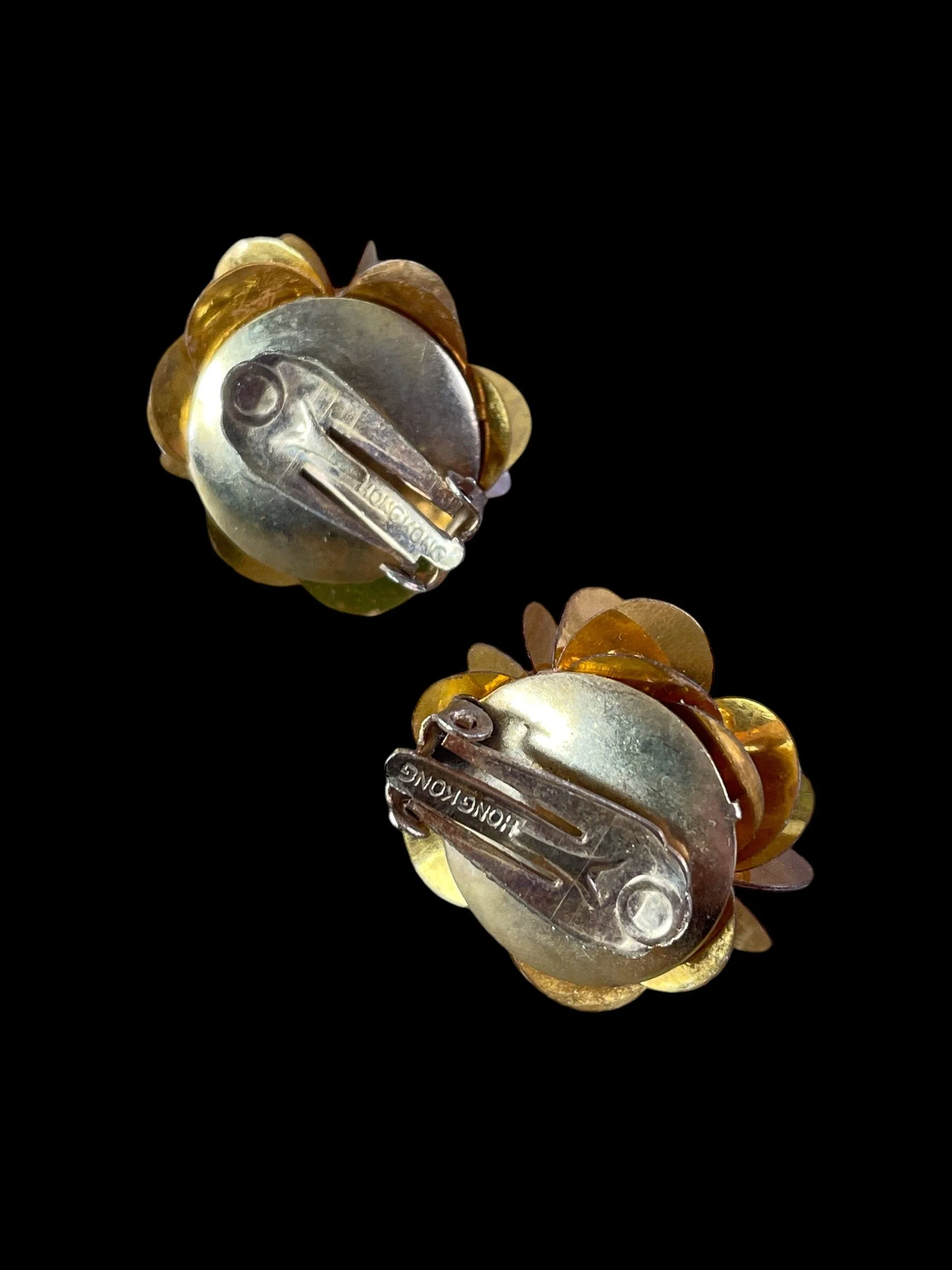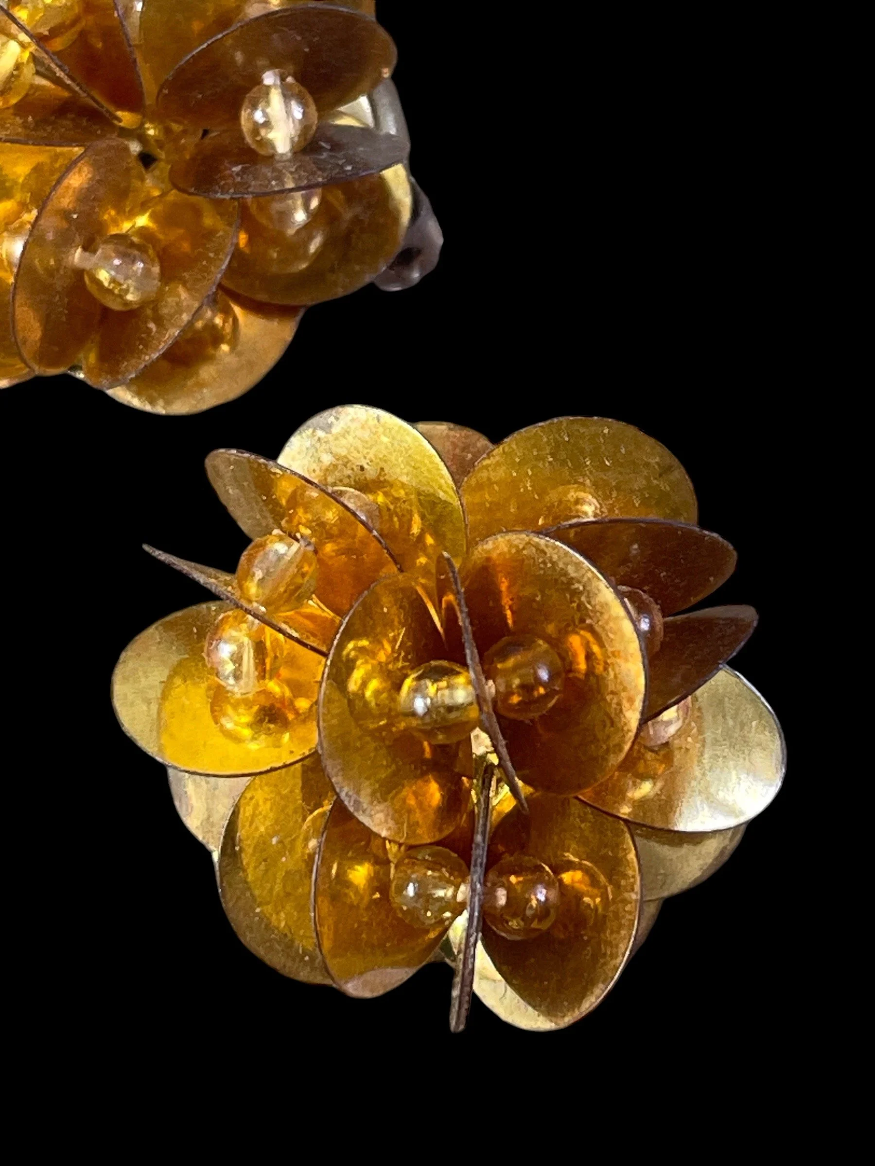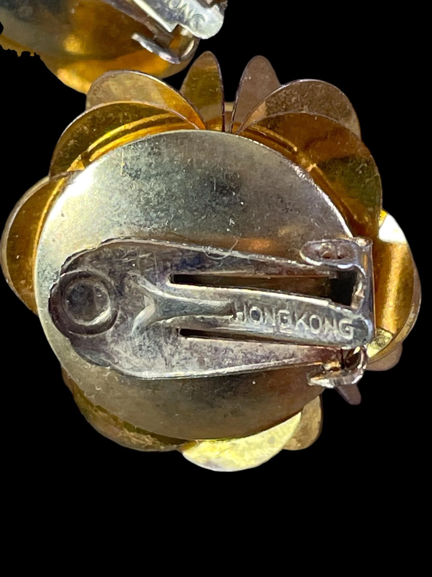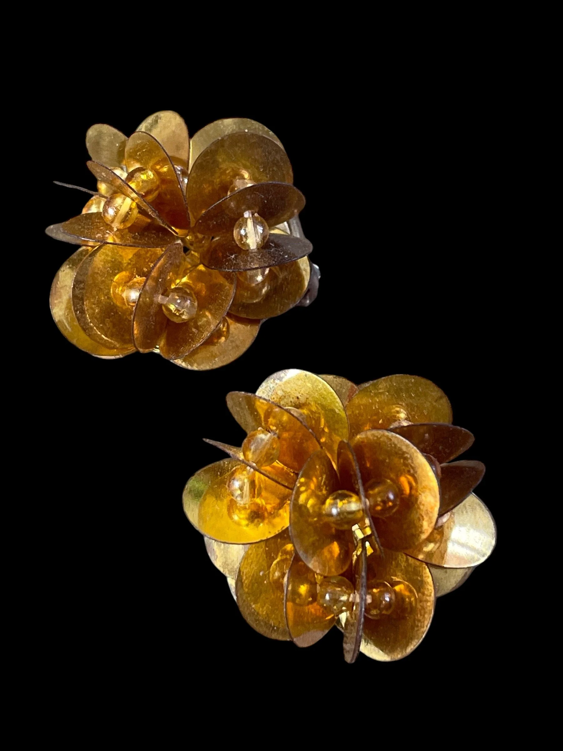 A lovely pair of 3D vintage earrings in metallic gold with interlinked beadings. Clip in earrings that measure approx 2.5cm x 2.5cm each.