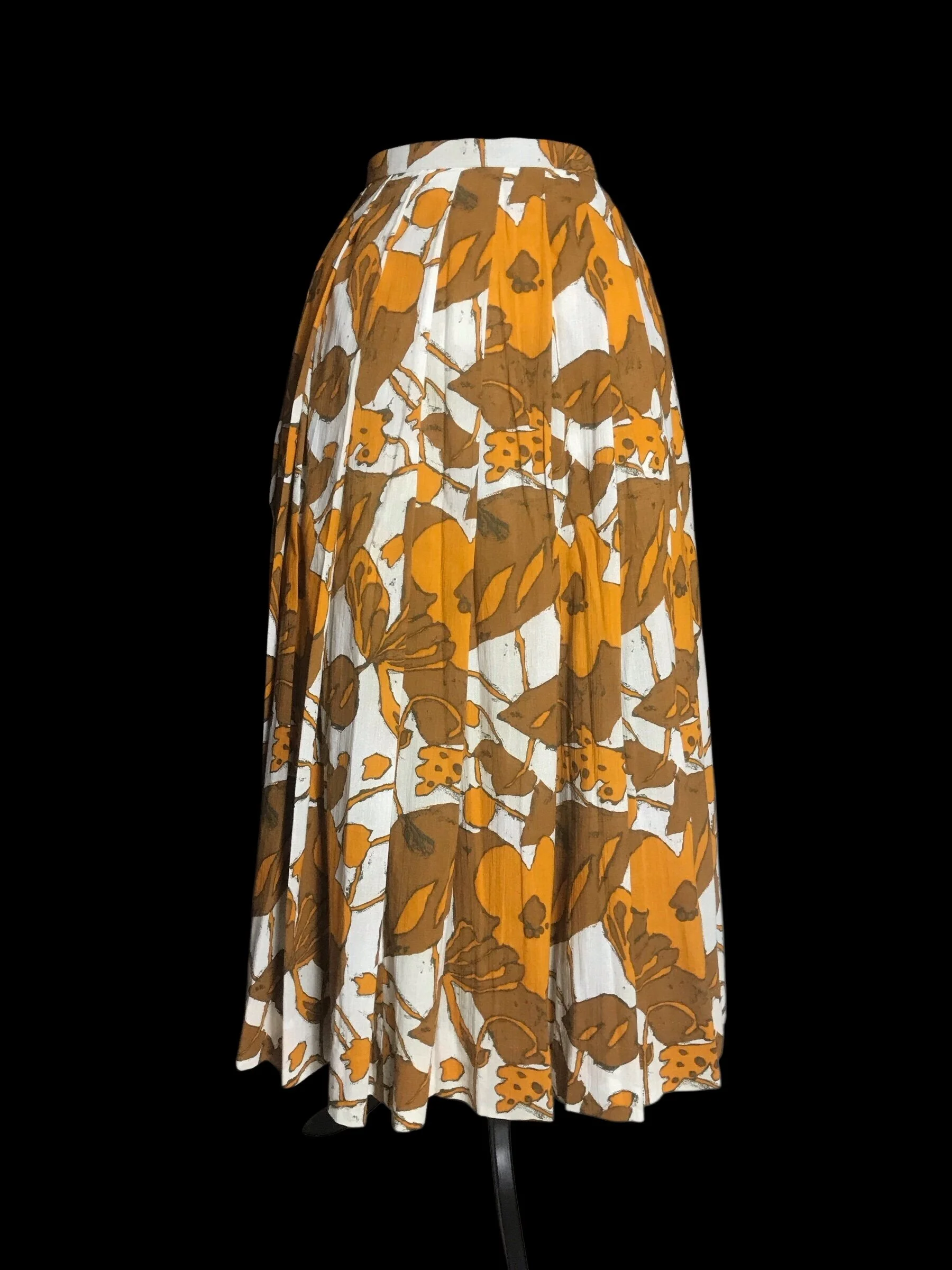 It closes with a hidden 7" zip on the left hip, has some short pleats cascading from the waist and has belt loops on the waistband.