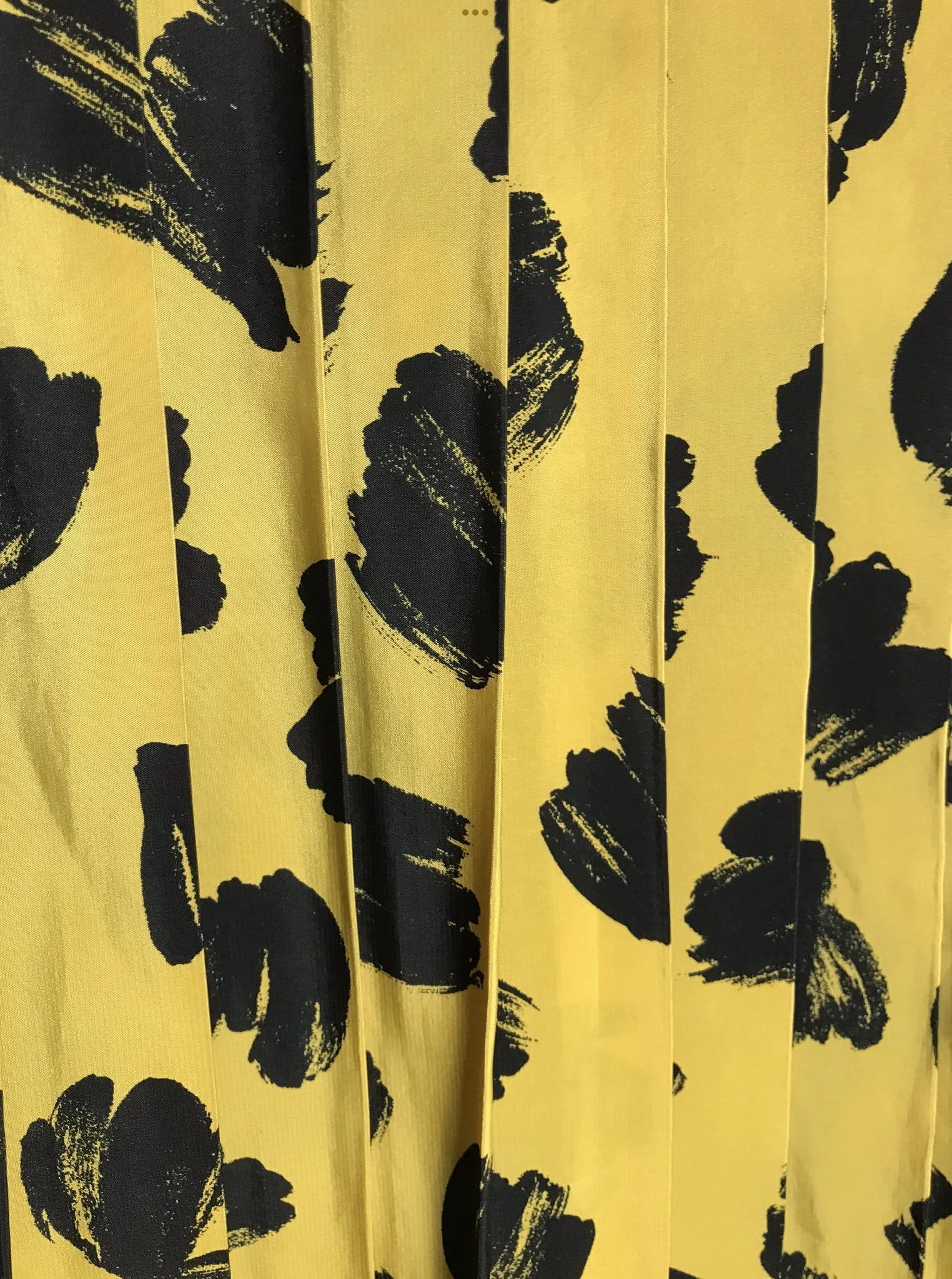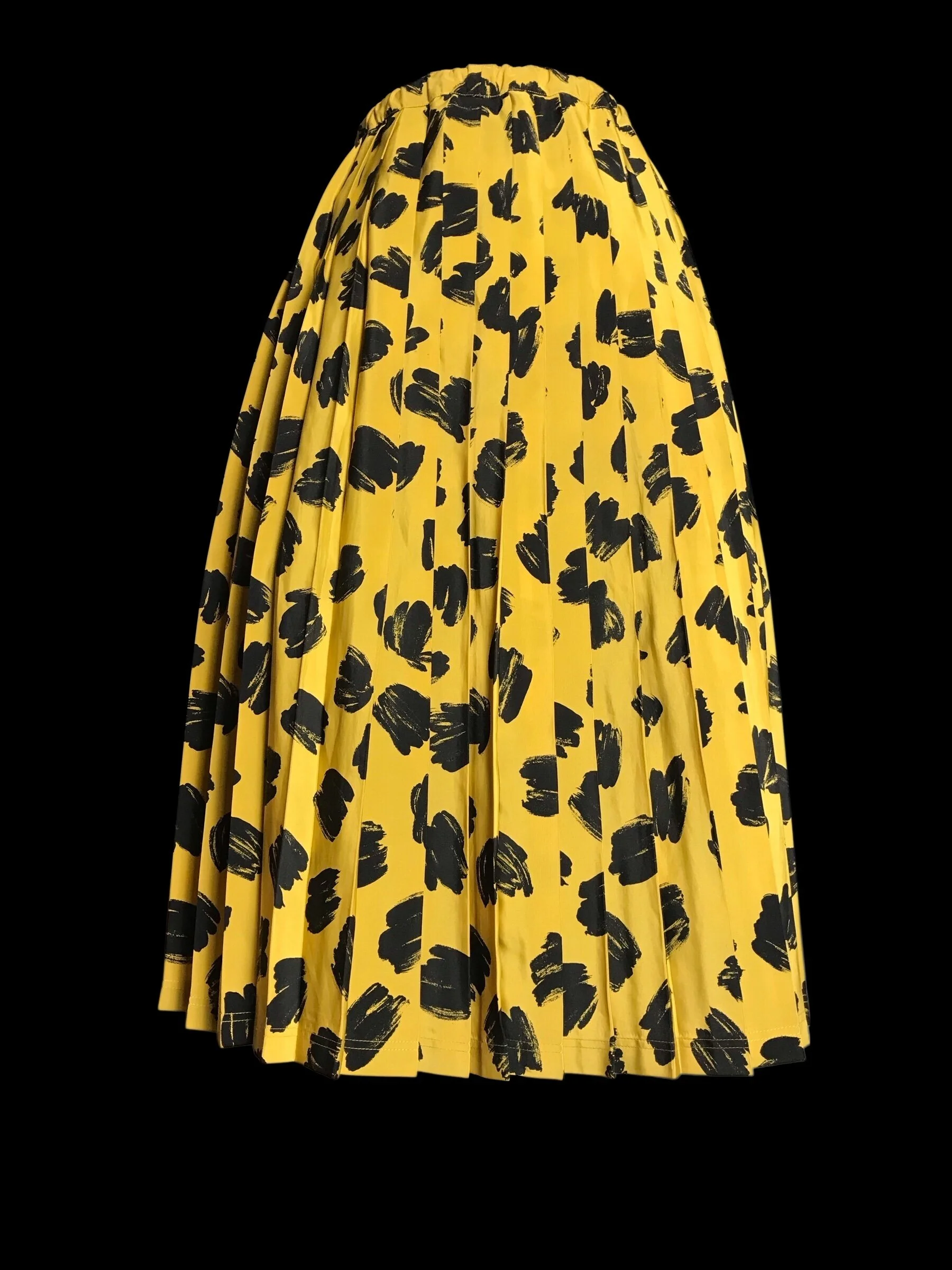 It is accordian-pleated from waist to hem and has an elasticated waistband.
